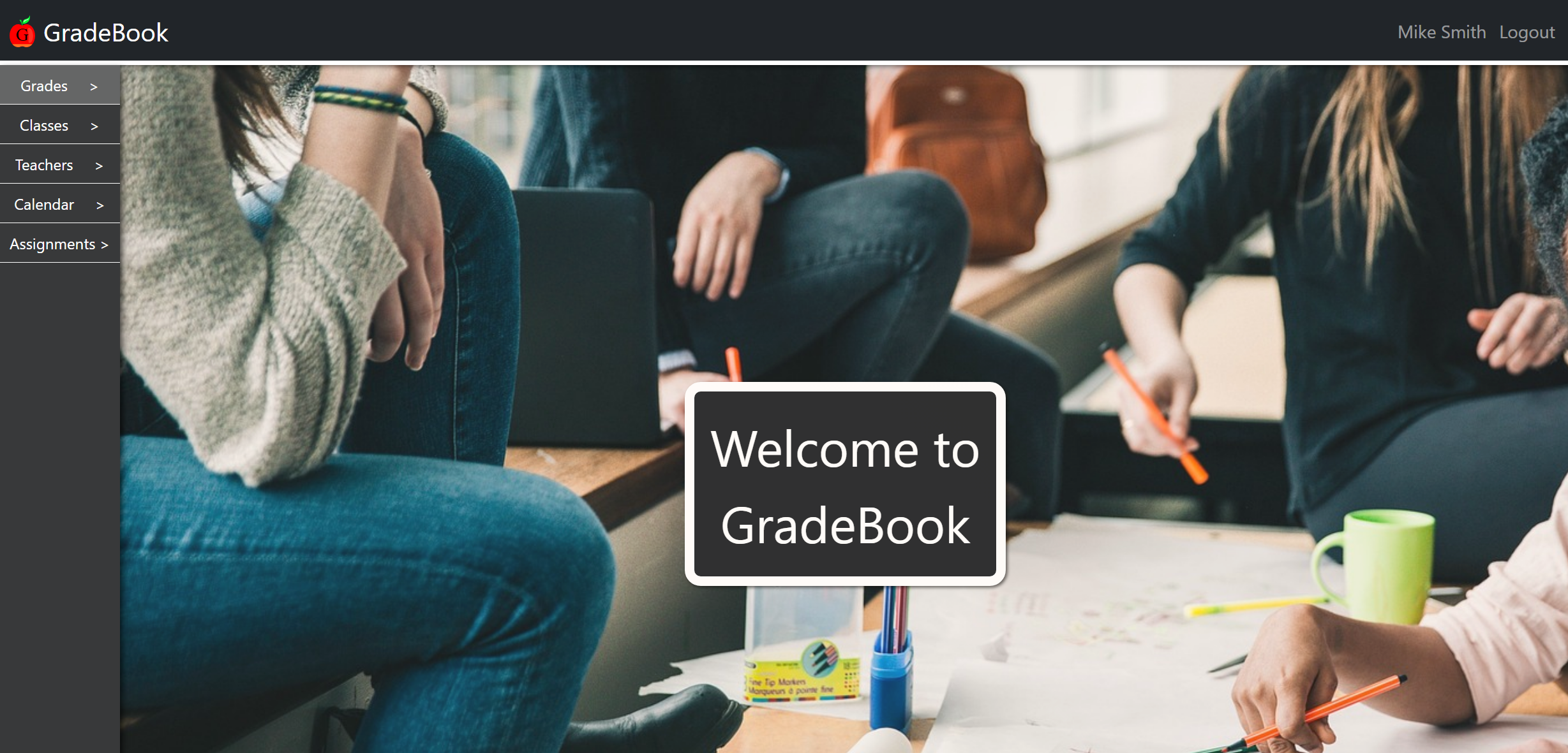 School grading application, to be used by teachers and students to either submit or evaluate work, with a quick and accessible ui.